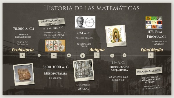 35.000 a. C. - Conocimientos acerca de la cuantificación del tiempo 20.000 a. C. - Primeras referencias a multiplicaciones y números primos 3400 a. C. - Primeros sistemas de numeración para pesos y medidas en Mesopotamia