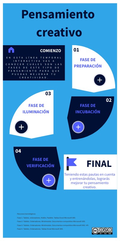 En esta línea temporal interactiva vas a conocer cuáles son las fases de este tipo de pensamiento para que puedas mejorar tu creatividad.