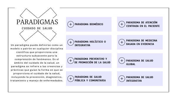 Un paradigma puede definirse como un modelo o patrón en cualquier disciplina científica que proporciona una estructura subyacente para la comprensión de fenómenos. En el ámbito del cuidado de la salud, un paradigma se refiere a las creencias y prácticas que guían la forma en que se proporciona el cuidado de la salud, incluyendo la prevención, diagnóstico, tratamiento y manejo de enfermedades.