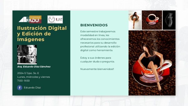 Este semestre trabajaremos modalidad en línea, les ofreceremos los conocimientos necesarios para su desarrollo profesional utilizando la edición digital como herramienta. Estoy a sus órdenes para cualquier duda o pregunta. Nuevamente bienvenidos!!