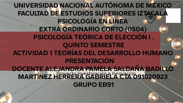 uNIVERSIDAD NACIONAL AUTÓNOMA DE MÉXICO FACULTAD DE ESTUDIOS SUPERIORES IZTACALA PSICOLOGÍA EN LÍNEA EXTRA ORDINARIO CORTO (0504) psicología teórica de elección I . QUINTO SEMESTRE ACTIVIDAD 1 TEORÍAS DEL DESARROLLO HUMANO presentación docente alejandra pamela saldaña badillo Martínez herrera gabriela CTA 091020923 grupo eb91