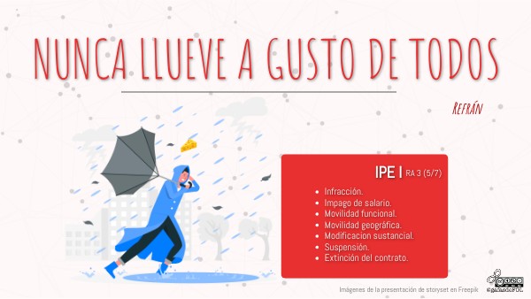 La relación laboral se mantiene a lo largo del tiempo (ya sabes que más o menos duradero en función del contrato) y durante el transcurso de la misma pueden ocurrir muchas cosas... algunas de ellas pueden ser debidas a necesidades de organización de la empresa, otras por desavenencias entre las partes, otras por el comportamiento, digamos "incorrecto", de alguna de las partes, otras por diferencias de interpretación...En cualquier caso, esto da lugar a cambios en los que podemos estar o no de acuerdo y, si no lo estamos, debemos identificar los recursos laborales existentes antes estas vicisitudes.