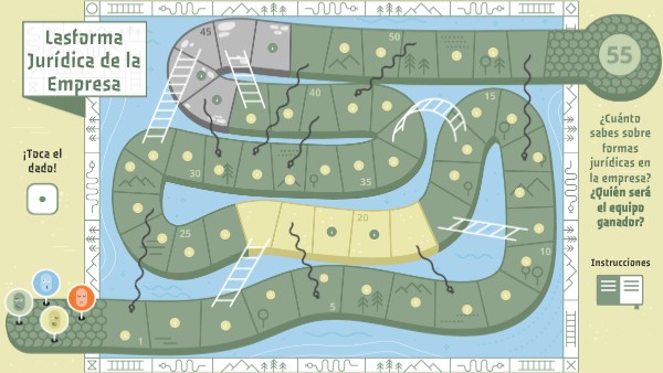 INSTRUCCIONES Los jugadores comienzan con una ficha —que representa a cada uno de ellos— en el casillero inicial y se turnan para lanzar el dado. Las fichas se mueven según la numeración del tablero, en sentido ascendente. Si al finalizar un movimiento un jugador cae en un casillero en donde comienza una escalera, sube por ella hasta el casillero donde ésta termina. Si, por el contrario, cae en uno en donde comienza la cola de una serpiente, desciende por ésta hasta el casillero donde finaliza su cabeza. En las casillas en las que encontrará preguntas, el jugador debe acertarlas para poder avanzar, de lo contrario volverá a la casilla anterior. Si un jugador obtiene un 6 podrá mover dos veces en un solo turno. Si un jugador obtiene tres 6 consecutivos, deberá regresar al casillero inicial y perderá un turno sin jugar. El jugador que logra llegar al casillero final es el ganador. Estando a seis o menos casilleros del final, debe obtener exactamente el número que le falta para llegar a éste y si el número obtenido supera al número de casilleros restante, el jugador no podrá moverse.