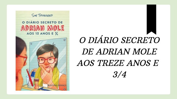 A personagem principal é Adrian Mole, Adrian é um pré-adolescente que está a compartilhar como é a vida e as dificuldades de um pré-adolescente como as borbulhas, a escola, os amigos, os amores. O Adrian destaca algumas características como ele ser bastante observador e inteligente, ser bastante autocrítico, sarcástico e expressa as suas opiniões de forma franca e direta, ao longo do livro também podemos ver que ele é bastante sensível, vulnerável e carinhoso. Essas características são importantes, pois justificam as formas de como ele se expressa e dizia as coisas, ele é bastante autocrítico, por exemplo, estava sempre a dizer alguns dos seus defeitos como as borbulhas enormes era observador e inteligente justificando o porquê de ele compreender as coisas, como o divórcio dos pais e outros problemas de outros personagens que um pré-adolescente não entenderia assim tão bem. Algumas peripécias que posso encontrar foi quando Nigel se apaixonou e começou a namorar com a rapariga que ele gostava, a Pandora, o divórcio dos pais, o convívio com o padrasto, a madrasta e o seu filho. Ele começar a namorar com a Pandora, reconciliar-se com Nigel e a reconciliação dos pais. No final do livro Adrian continua a falar sobre as suas experiências como um pré-adolescente e o livro dá uma sensação de continuidade, mas basicamente ele namora com a Pandora, os pais voltaram a ficar juntos e ele já não tem tantas borbulhas.