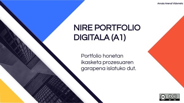 Amaia Arenal Vidorreta naiz, Bilboko Eskurtze BHIko 2DBHko Geografia eta Historia irakaslea. Portfolio honen helburua, Curridigi B1 ikastaroan zehar garatutako jarduerak partekatzea da.