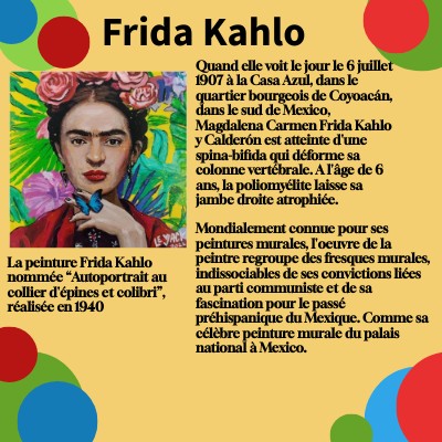 Quand elle voit le jour le 6 juillet 1907 à la Casa Azul, dans le quartier bourgeois de Coyoacán, dans le sud de Mexico, Magdalena Carmen Frida Kahlo y Calderón est atteinte d'une spina-bifida qui déforme sa colonne vertébrale. A l'âge de 6 ans, la poliomyélite laisse sa jambe droite atrophiée.