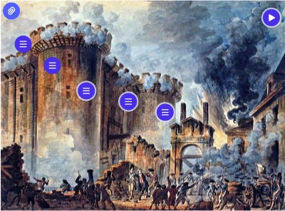 La Bastiglia era una grande fortezza situata entro le mura di Parigi, dove sorgeva una delle porte pricipali della città per ordine di Carlo Quinto tra il 1367 e il 1382, con lo scopo di rafforzare le mura orientali della città per proteggere la Porte St-Antoine. Nel 1789 il 14 luglio viene assaltata dai parigini che erano insorti per rubare le armi, ma in special modo era un modo per spaventare re Luigi sedicesimo.