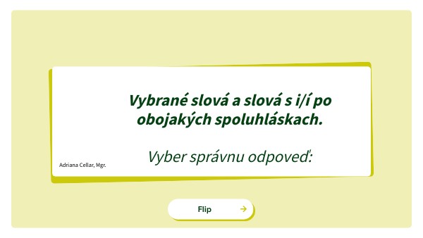 Vybrané slová a slová s i/í po obojakých spoluhláskach. Vyber správnu odpoveď: