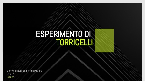 L'esperimento di Torricelli è un famoso esperimento di fisica che fu condotto nel 1643 da Evangelista Torricelli, uno degli allievi di Galileo Galilei. Questo esperimento portò alla creazione del primo barometro e alla scoperta della pressione atmosferica. In questa presentazione vedremo come fu realizzato l'esperimento, attraverso le procedure l'utilizzo di materiali ma soprattutto attraverso la spiegaione dell'esperimento...