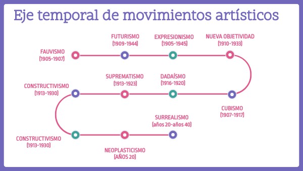 - Divisionismo y puntillismo (descomposición de la luz y del color)- Cubismo (representación simultánea de múltiples perspectivas) - Orfismo (representación abstracta de la luz y color)