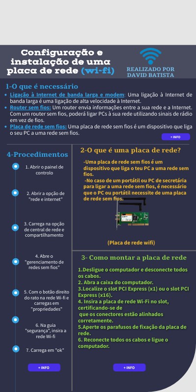 Neste infográfico ensina como fazer a montagem e configuração de uma placa de rede (wifi).