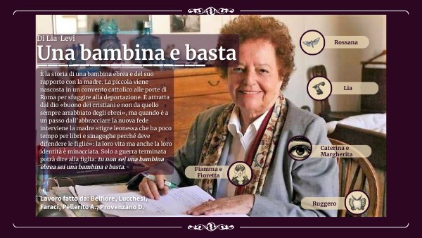 È la storia di una bambina ebrea e del suo rapporto con la madre. La piccola viene nascosta in un convento cattolico alle porte di Roma per sfuggire alla deportazione. È attratta dal dio «buono dei cristiani e non da quello sempre arrabbiato degli ebrei», ma quando è a un passo dall’abbracciare la nuova fede interviene la madre «tigre leonessa che ha poco tempo per libri e sinagoghe perché deve difendere le figlie»: la loro vita ma anche la loro identità è minacciata. Solo a guerra terminata potrà dire alla figlia: tu non sei una bambina ebrea sei una bambina e basta.