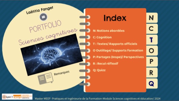 N: Notions abordées C: Cognition T : Textes/ Rapports officiels O Outillage/ Supports formation P: Partages (Inspe)/ Perspectives R : Recul réflexif Q: Quizz