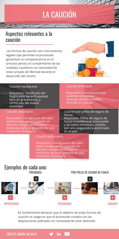 Las formas de caución son instrumentos legales que permiten al procesado garantizar su comparecencia en el proceso penal y el cumplimiento de las medidas cautelares sin necesidad de estar privado de libertad durante el desarrollo del mismo.