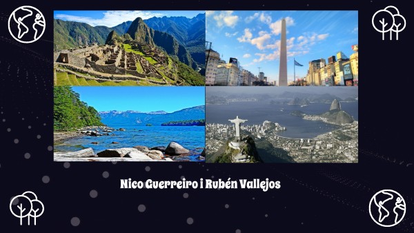 El nostre viatge ha començat anant a l' aeroport de Manises, a las 11:00 eixiem en un avió fins a Argentina. Que ahí veriem el Obelisc, la Cordillera dels Andes i el llac Nahuel Huapi. Als 2 dies d'estar en Argentina he agafat altre avió que anva fins a Xile on soles visitariem el Glaciar Grey. Un dia despres ens aniriem a Brasil, on visitarien l'estàtua del Cristo Redentor i fariem un tour per L' Amazones. Tres dies despres ens aniriem finalment a Perú, on visitariem el Macchu Picchu i el llac TitiCaca, després de visitar tos estos llocs importants tornariem a casa.
