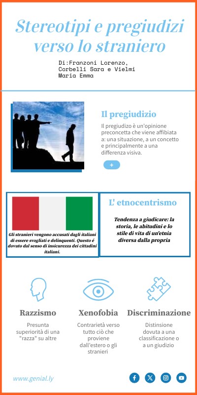 Gli stranieri vengono accusati dagli italiani di essere svogliati e delinquenti. Questo é dovuto dal senso di insicurezza dei cittadini italiani.