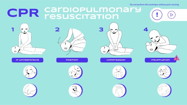 We intertwine our hands one on top of the other. Give 30 compressions at a frequency of 100 per minute continuously.