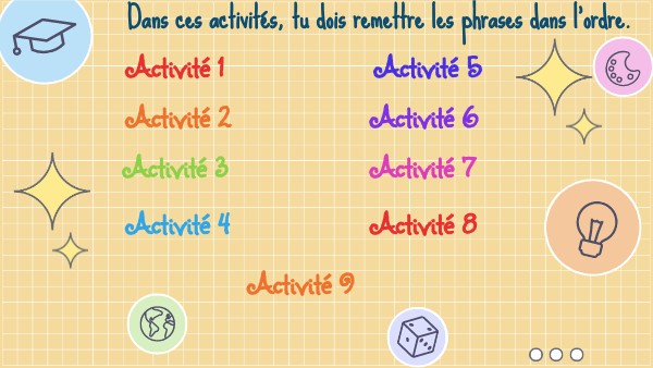 Dans ces activités, tu dois remettre les phrases dans l'ordre.