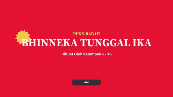 Bhinneka Tunggal Ika terdiri dari tiga kata, yang apabila diterjemahkan setiap katanya, bhinneka artinya beraneka ragam, tunggal berarti satu dan ika berarti itu, Bhinneka Tunggal Ika adalah moto atau semboyan bangsa Indonesia yang tertulis pada lambang negara Indonesia yaitu Garuda Pancasila. Semboyan negara ini menggambarkan kondisi Indonesia yang mempunyai banyak keragaman budaya, namun tetap menjadi satu bangsa utuh. Kata Bhinneka Tunggal Ika berasal dari bahasa Sansekerta yang dituliskan dalam kitab Sutasoma karangan Mpu Tantular pada masa Majapahit sekitar abad ke-14.