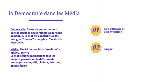 On définit souvent trop rapidement la démocratie par une formule lapidaire, « un homme, une voix ». Mais la démocratie c'est plus que cela ; la démocratie c'est « un homme informé, une voix ». Sinon elle n'est que de façade. Les journaux, la radio, la télévision et aujourd'hui Internet. Les médias ont depuis leur origine joué un rôle clef dans le processus démocratique. Tout d'abord, parce qu'en informant les citoyens – de la tenue des élections, des programmes des différents candidats... – ils ont eu un effet sur la participation politique Julia Cagé « Médias et démocratie », Regards croisés sur lʼéconomie, n°18, 2016.