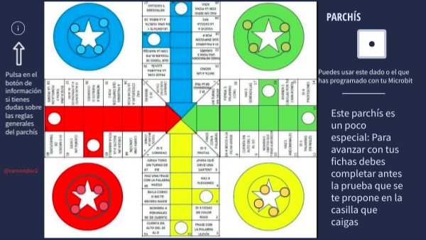 Este parchís es un poco especial: Para avanzar con tus fichas debes completar antes la prueba que se te propone en la casilla que caigas