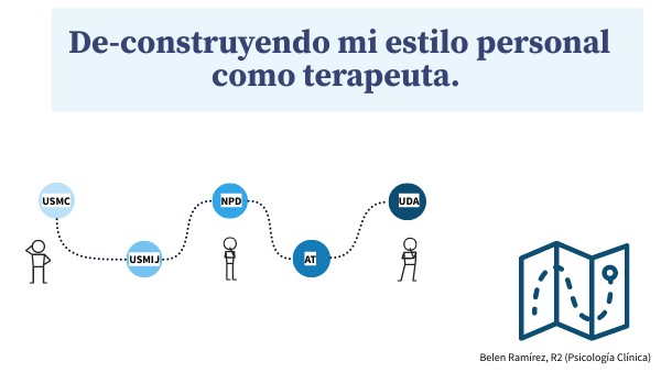 1) Motivaciones para esta supervisión.2) Aclarando el significado de Estilo Personal del Terapeuta.3) Operacionalizar lo abstracto con riesgos.4) Influencias y conceptos asociados: modelo teórico, experiencia y práctica clinica, personalidad y alianza terapéutica.5) ¿Consciente de mi estilo personal como terapeuta?6) Un mismo estilo, dos sentires dispares: - Un caso idílico para dar nuestros primeros pasos. - Un caso planteado mayoritariamente desde la angustia.7) Reflexiones personales.