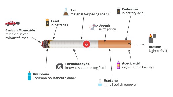 Used in lighter fluid, butane is among the many harmful chemicals in cigarette smoke.