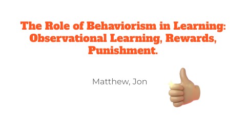 The Role of Behaviorism in Learning: Observational Learning, Rewards, Punishment.