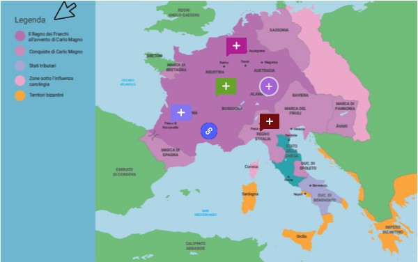 - Nelle aree di confine, come l'Europa danubiana e la Spagna, che erano più esposte all'attacco dei nemici,Carlo decise di riunire le contee in aree più vaste dette marche o ducati, affidate ognuna a marchesi e duchi. Nacquero così la Marca Orientale che si trova nell'attuale Austria, sotto attacco dagli Slavi e la Marca Spagnola nella regione attuale dei Pirenei e di barcellona, minacciata dagli Arabi.