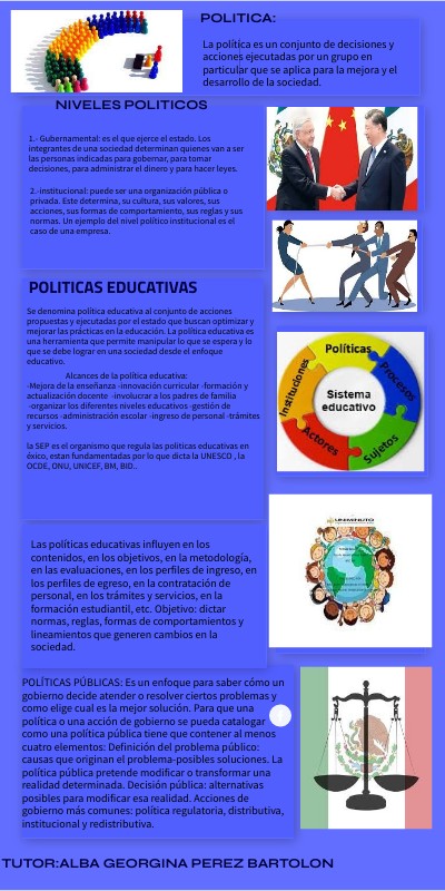 Pedagogía MX (15 de abril del 2021) ¿Qué son las 'Políticas Educativas'? | Conceptos Clave | Pedagogía MX. [Video]. https://drive.google.com/file/d/1CRQSE1_xKjxnNPxxJS_9sxgjXFwG47wJ/view?usp=sharing Público y Político (25 de octubre del 2018) ¿Qué son las políticas públicas y para qué sirven? [Video]. https://drive.google.com/file/d/1Bm_uUqBLdPwBVA45ReIPKrm8LoTR4e-5/view?usp=sharing