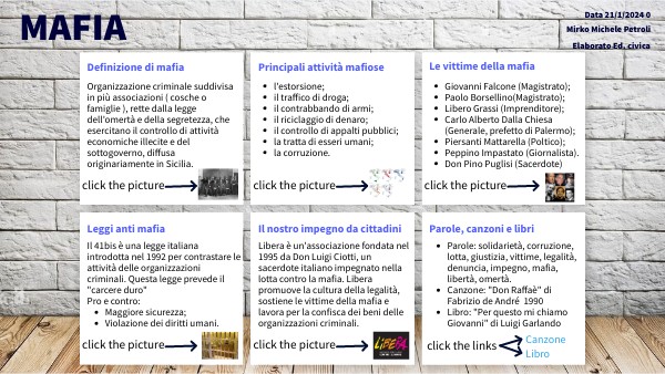 - Parole: solidarietà, corruzione, lotta, giustizia, vittime, legalità, denuncia, impegno, mafia, libertà, omertà.