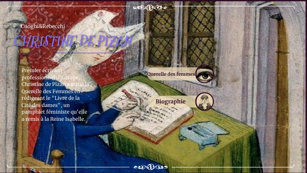 Premier écrivain professionnel d'Europe, Christine de Pizan a initié la Querelle des Femmes en rédigeant le "Livre de la Cité des dames", un pamphlet féministe qu'elle a remis à la Reine Isabelle.