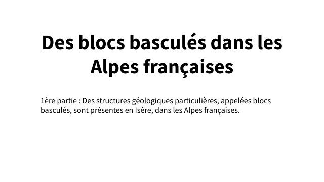 1ère partie : Des structures géologiques particulières, appelées blocs basculés, sont présentes en Isère, dans les Alpes françaises.