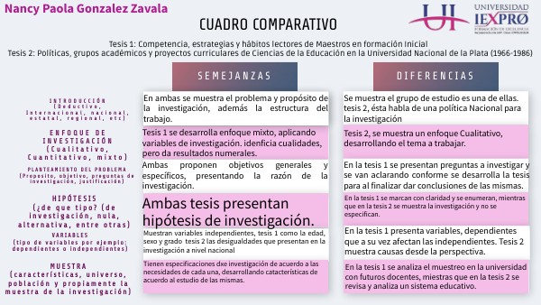 Tesis 1: Competencia, estrategias y hábitos lectores de Maestros en formación Inicial Tesis 2: Políticas, grupos académicos y proyectos curriculares de Ciencias de la Educación en la Universidad Nacional de la Plata (1966-1986)
