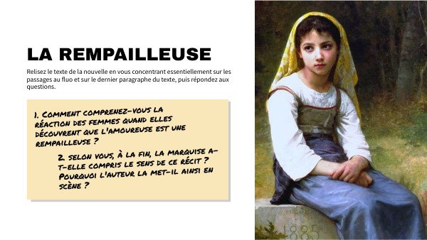Relisez le texte de la nouvelle en vous concentrant essentiellement sur les passages au fluo et sur le dernier paragraphe du texte, puis répondez aux questions.