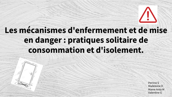 Les mécanismes d'enfermement et de mise en danger : pratiques solitaire de consommation et d'isolement.