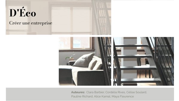 D'Eco nous est venue simplement, il regroupe l'essence de notre entreprise : la décoration, facile et accessible ainsi que la conscience environnementale. Mémorable, efficace, il fait sens pour notre compagnie. D'Eco s'inscrit dans une époque concurrencielle et saura se faire une place sur le marché.