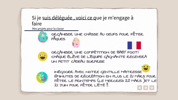 iNégocier avec notre gentille maitresse 10minutes de récréation en plus le 21 mars pour fêter le printemps (le mercredi 20 mars )et le 21 juin pour fêter l'été !!