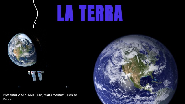 La terra è un pianeta formato da geosfera, atmosfera, idrosfera e biosfera, che insieme formano un sistema.Ha la forma di un geoide, cioè è una sfera schiacciata ai poli. La terra compie un moto di rotazione attorno all' asse di rotazione terrestre: un asse inclinato che attraversa la terra e passa per il Polo Nord e il Polo Sud.