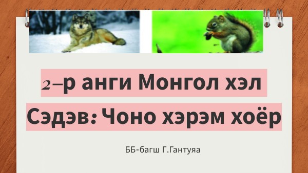 2-р анги Монгол хэл Сэдэв: Чоно хэрэм хоёр