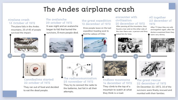 The plane falls in the Andes mountains, 25 of 45 of people survived the impact.