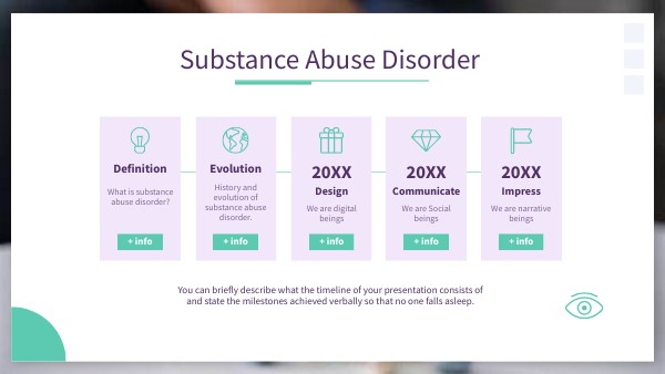 You can briefly describe what the timeline of your presentation consists of and state the milestones achieved verbally so that no one falls asleep.