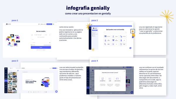 una vez registrado el siguinente paso es selccionar la opción "crear un genially" y seleccionar una plantilla de tu preferencia
