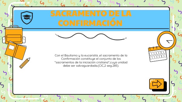 Con el Bautismo y la eucaristía ,el sacramento de la Confirmación constituye el conjunto de los "sacramentos de la iniciación cristiana",cuya unidad debe ser salvaguardada.(CIC,2 seg.285).