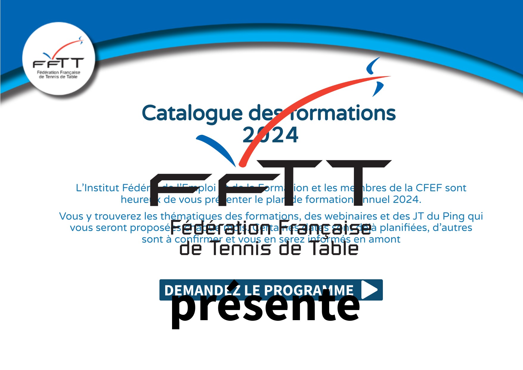 L’Institut Fédéral de l’Emploi et de la Formation et les membres de la CFEF sont heureux de vous présenter le plan de formation annuel 2024. Vous y trouverez les thématiques des formations, des webinaires et des JT du Ping qui vous seront proposées chaque mois. Certaines dates sont déjà planifiées, d’autres sont à confirmer et vous en serez informés en amont