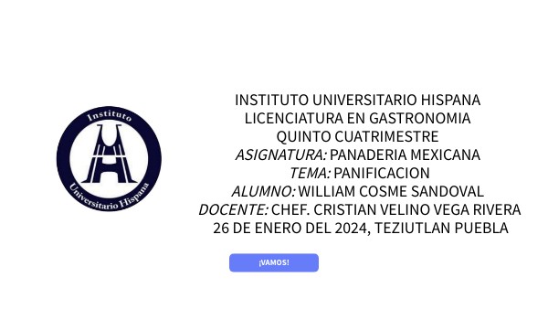 INSTITUTO UNIVERSITARIO HISPANA LICENCIATURA EN GASTRONOMIA QUINTO CUATRIMESTRE ASIGNATURA: PANADERIA MEXICANA TEMA: MASAS BATIDAS ALUMNO: WILLIAM COSME SANDOVAL DOCENTE: CHEF. CRISTIAN VELINO VEGA RIVERA 26 DE ENERO DEL 2024, TEZIUTLAN PUEBLA
