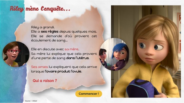 Riley a grandi.Elle a ses règles depuis quelques mois. Elle se demande d’où provient cet écoulement de sang… Elle en discute avec sa mère. Sa mère lui explique que cela provient d’une perte de sang dans l’utérus. Ses amies lui expliquent que cela arrive lorsque l’ovaire produit l’ovule.
