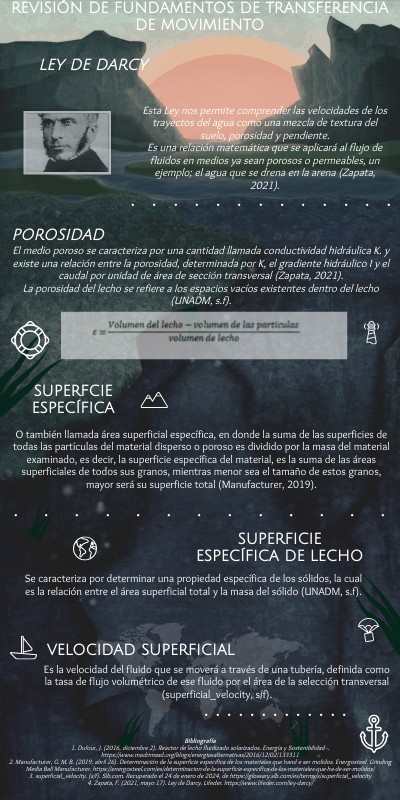 Bibliografía 1. Dufour, J. (2016, diciembre 2). Reactor de lecho fluidizado solarizados. Energía y Sostenibilidad -. https://www.madrimasd.org/blogs/energiasalternativas/2016/12/02/133311 2. Manufacturer, G. M. B. (2019, abril 26). Determinación de la superficie específica de los materiales que hand e ser molidos. Energosteel. Grinding Media Ball Manufacturer. https://energosteel.com/es/determinacion-de-la-superficie-especifica-de-los-materiales-que-ha-de-ser-molidos/ 3. superficial_velocity. (s/f). Slb.com. Recuperado el 24 de enero de 2024, de https://glossary.slb.com/es/terms/s/superficial_velocity 4. Zapata, F. (2021, mayo 17). Ley de Darcy. Lifeder. https://www.lifeder.com/ley-darcy/