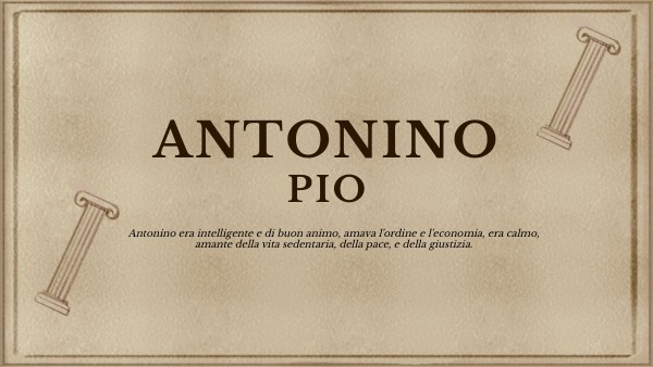 Nome completo: Titus Aurelius Fulvus Boionus Arrius Antoninus Altri titoli: Pontifex Maximus, Pius e Pater Patriae Nascita: Lanuvio, 19 settembre 86 Morte: Lorium, 7 marzo 161 Predecessore: Adriano Successore: Marco Aurelio e Lucio Vero Coniuge: Annia Galeria Faustina Figli: Annia Galeria Faustina, Aurelia Fadilla Adottivi, Marco Aurelio e Lucio Vero Dinastia: Antonini Padre: Tito Aurelio Fulvo Madre: Arria Fadilla Regno: 138-161 d.c.