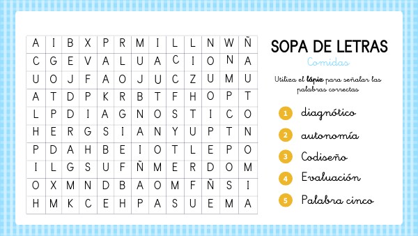 Utiliza el lápiz para señalar las palabras correctas